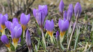 Die Krokusse und die Schneeglöckchen blühen Ende Februar