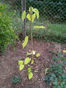 Im November haben wir den Garten nochmals umgegraben um die Gründüngung einzuarbeiten und unsere Winterzwiebeln gesetzt. Beim Umgraben ist der Spaten gebrochen, so hart ist unser Boden 🙂